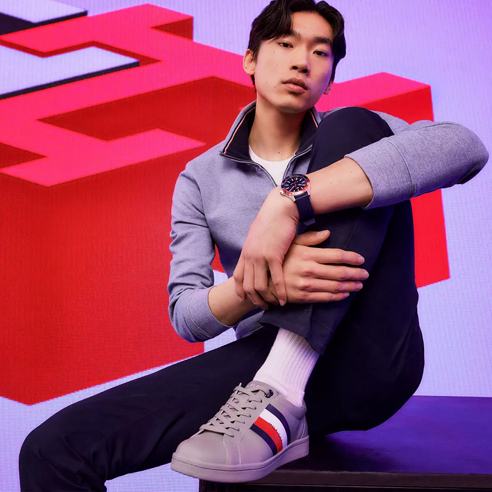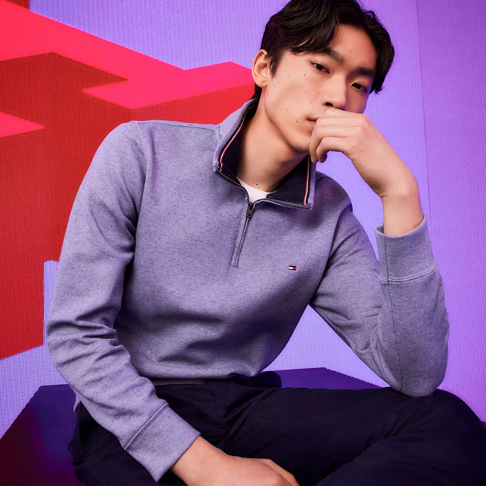 Add a little extra zip to your look with this men’s Tommy Hilfiger fleece top.