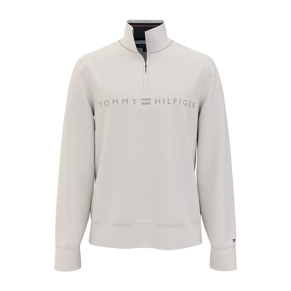 Keep your style elevated even when you need to layer for warmth. This men’s Tommy Hilfiger tonal logo quarter zip pullover has got you covered.
